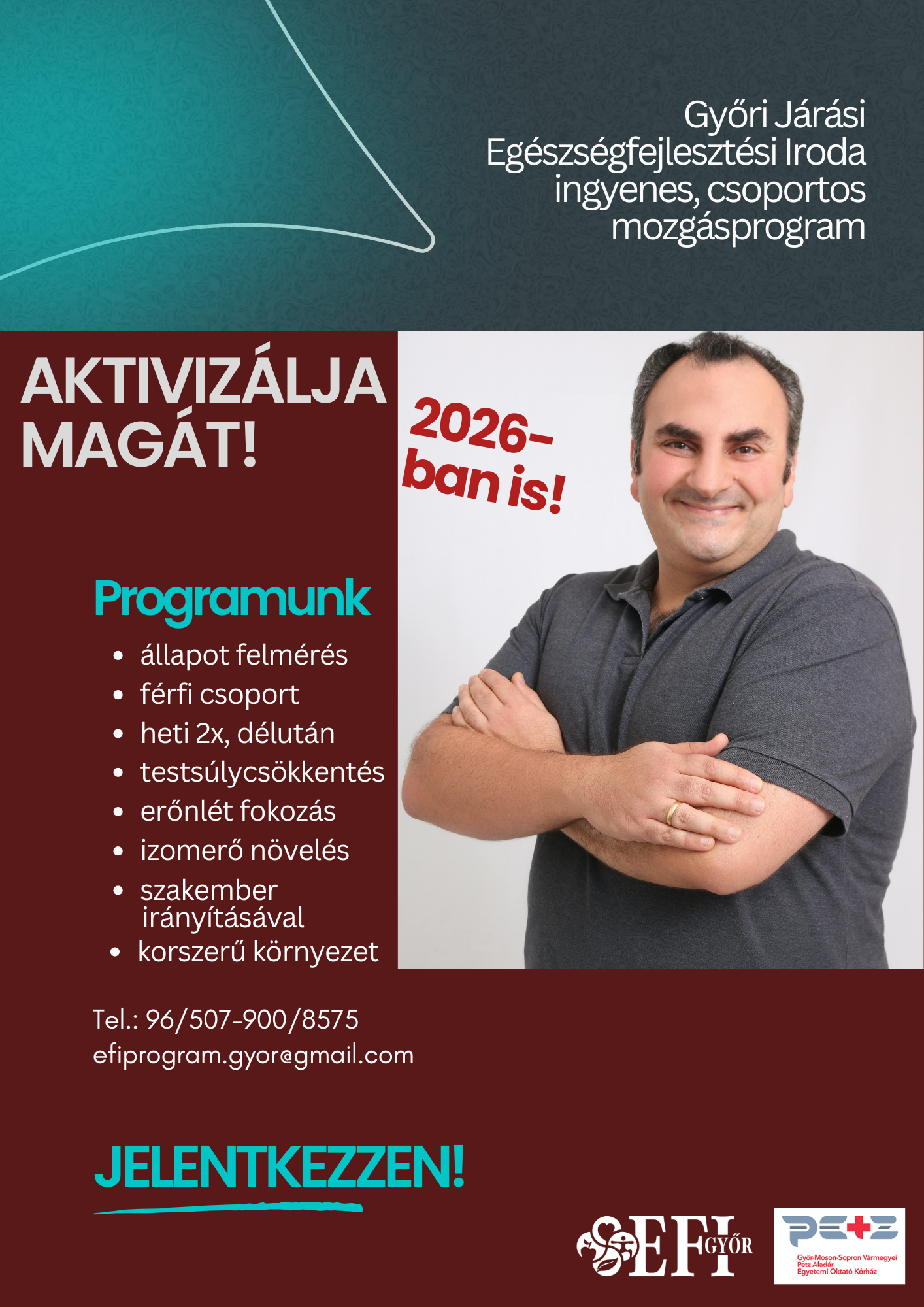 A részleteket a csatolmány tartalmazza: Csatolmány(ok): EFI testsúlycsökkentő program férfiaknak 2026-ban is!2.2 MB